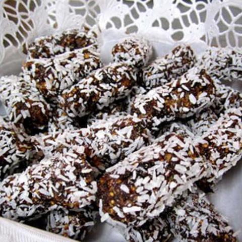 - Forma smeten till stänger och rulla dem i kokosflingor.