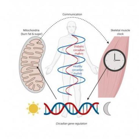 Nu har en grupp forskare visat att skelettmusklerna hos individer med typ 2-diabetes har en annan dygnsrytm än hos friska individer. Enligt forskarna kan detta bero på en miss i kommunikationen mellan cellernas klockstyrda – eller cirkadiska – gener och mitokondrierna, som omvandlar näring och syre till energi för cellerna.