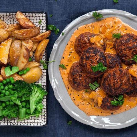 Ajvarbiffar med krämig paprikasås