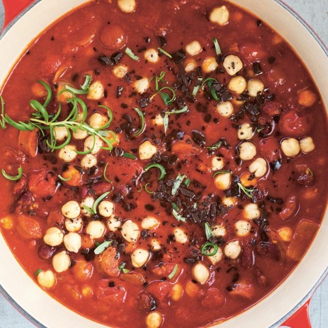 En enkel rätt att laga då man är många. Bönorna kan varieras och blandas efter tycke och smak. Den mörka chokladen ger en extra dimension.