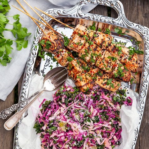 Grillade laxspett med asiatisk coleslaw