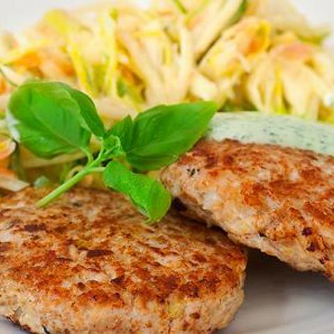 Basilikadressing och coleslaw gör denna rätt till ett festligt vardagsalternativ och barnens favorit.
