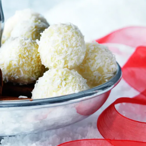 - Forma smeten till 25 bollar. Rulla i resterande kokos blandat med resten av limeskalet.