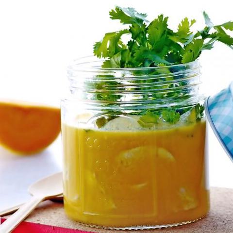 Kryddig pumpasoppa med kyckling och röda linser