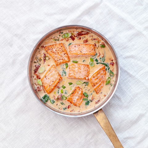 Lax i krämig sås med soltorkad tomat och spenat
