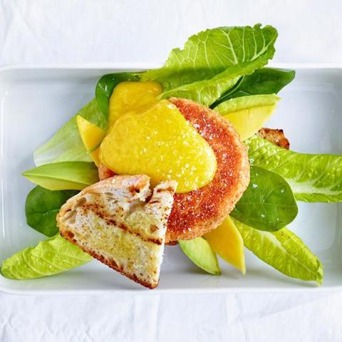 Laxburgare med mango och vitlöksaoli