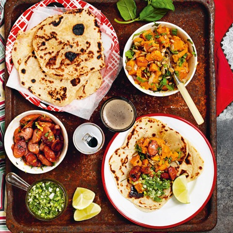 13. Servera pumpa, chorizo, tortilla och limeklyftor så att var och en kan göra sin egen taco.