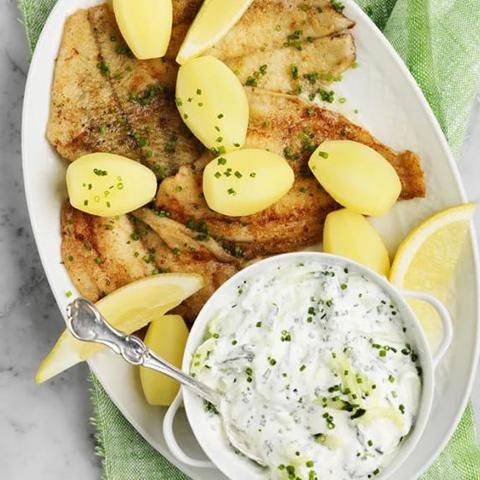 Stekt spätta med gurkfil