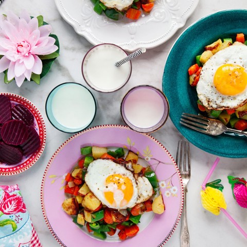 5. Servera din vårpyttipanna med stekt ägg och rödbetor.