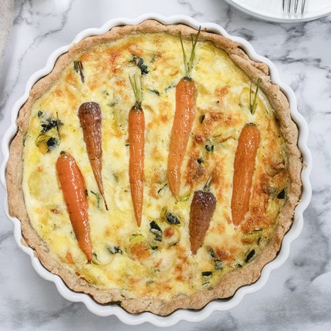 Läcker matpaj med morötter, fetaost och purjolök. Tips! För en extra festlig paj, skär hela morötter i tunna skivor och toppa pajen med skivorna. Pajdegen kan du förbereda dagen innan och förvara inplastad i kylen.